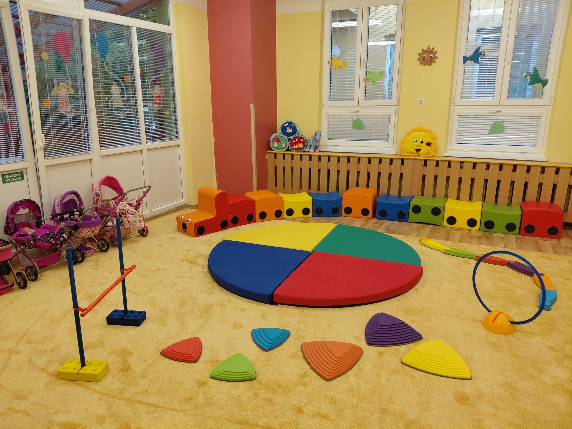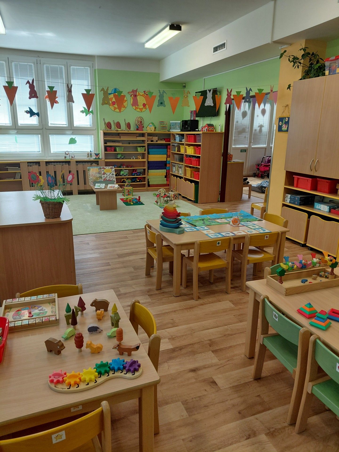 Ve třídě převažuje hra, která podporuje přirozenou zvídavost děti, rozvíjí jejich fantazii a umožňuje jim objevovat svět kolem sebe radostnou a nenásilnou formou. Hra je pro děti základním prostředkem poznávání, prostřednictvím kterého získávají nové zkušenosti a dovednosti. Sluníčková třída je útulná, plná barev a dětského smíchu. Děti zde mají k dispozici mnoho hraček a stavebnic. Herní koutky ve třídě lákají děti k námětovým hrám.